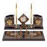 Настольный набор "Офисный" с часами из бежевого мрамора